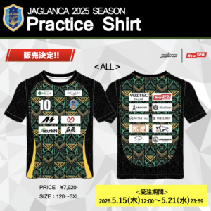 今シーズン、ジャグランカの選手達が着用するプラクティスシャツ及びトレーニングマッチシャツが、昨シーズンに引き続きゴールドパートナーである株式会社NewSPO.様にて販売いただけることになりましたのでお知らせ致します。(明日から1週間の期間限定受注販売となります)
